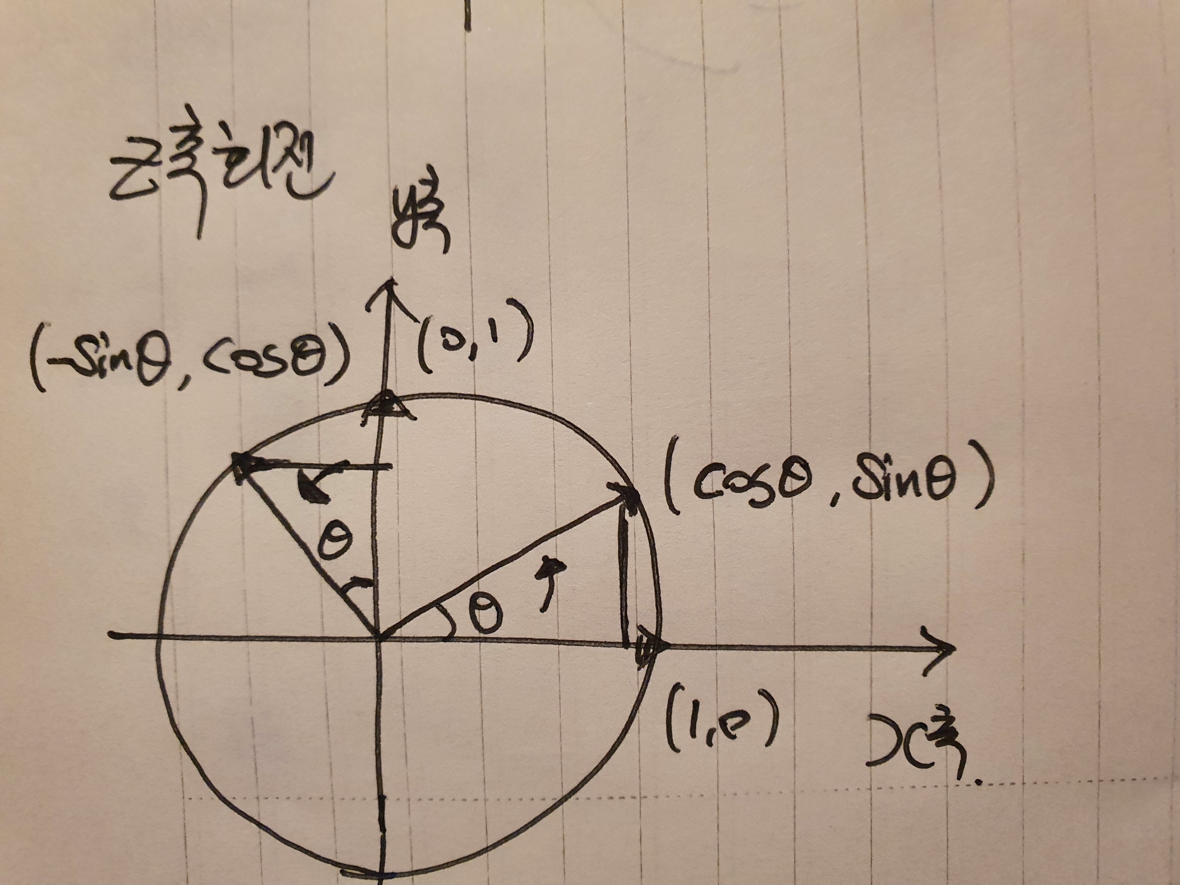 기본적으로 회전행렬에서 볼 수 있듯이,
