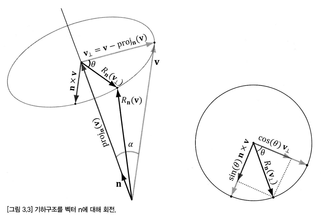 즉, cos(θ) v⟂ + sin(θ) ( n x v ) = Rn ( v⟂ )