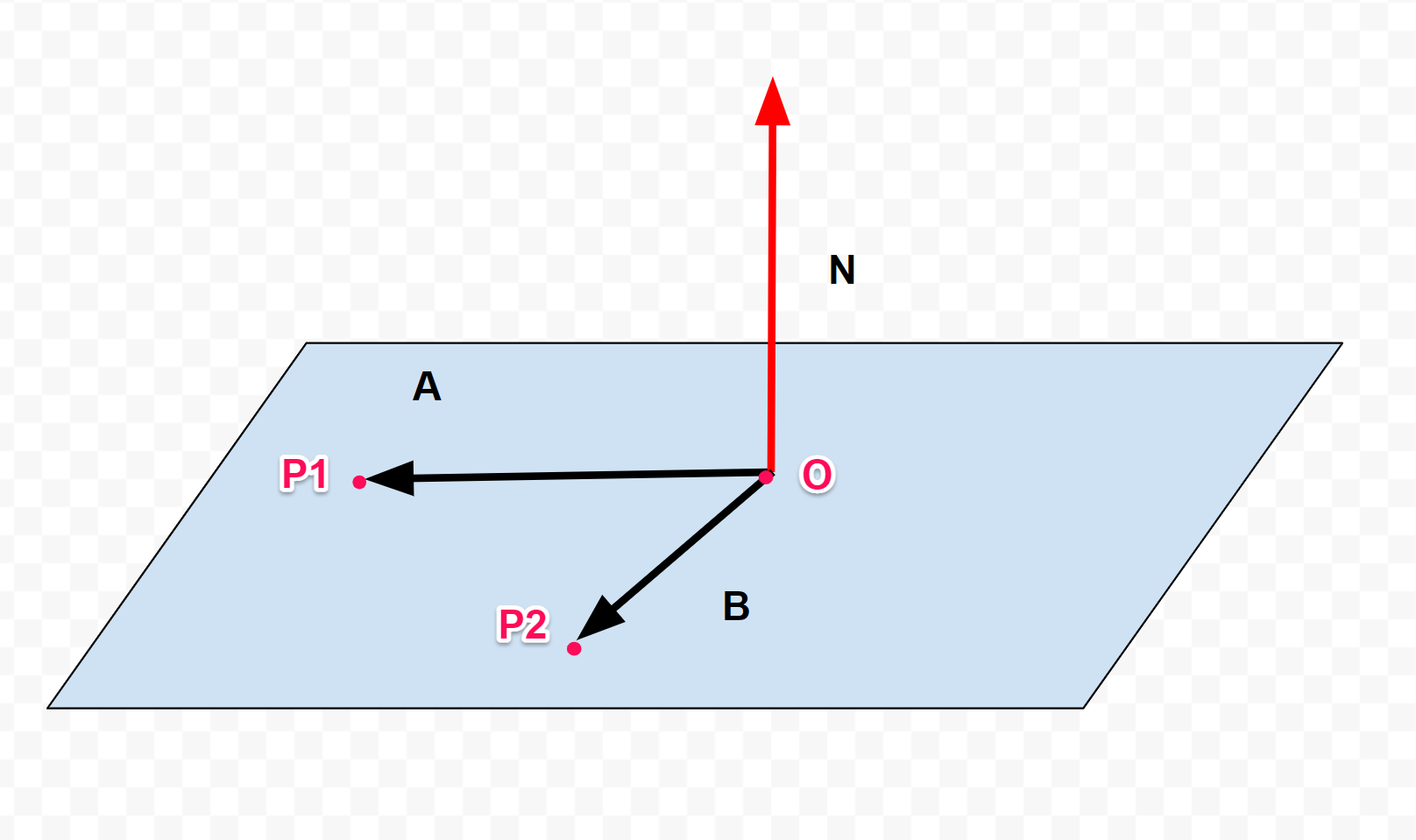 => 노말벡터와 평면 위의 벡터의 내적이 '0' 이라는 것은