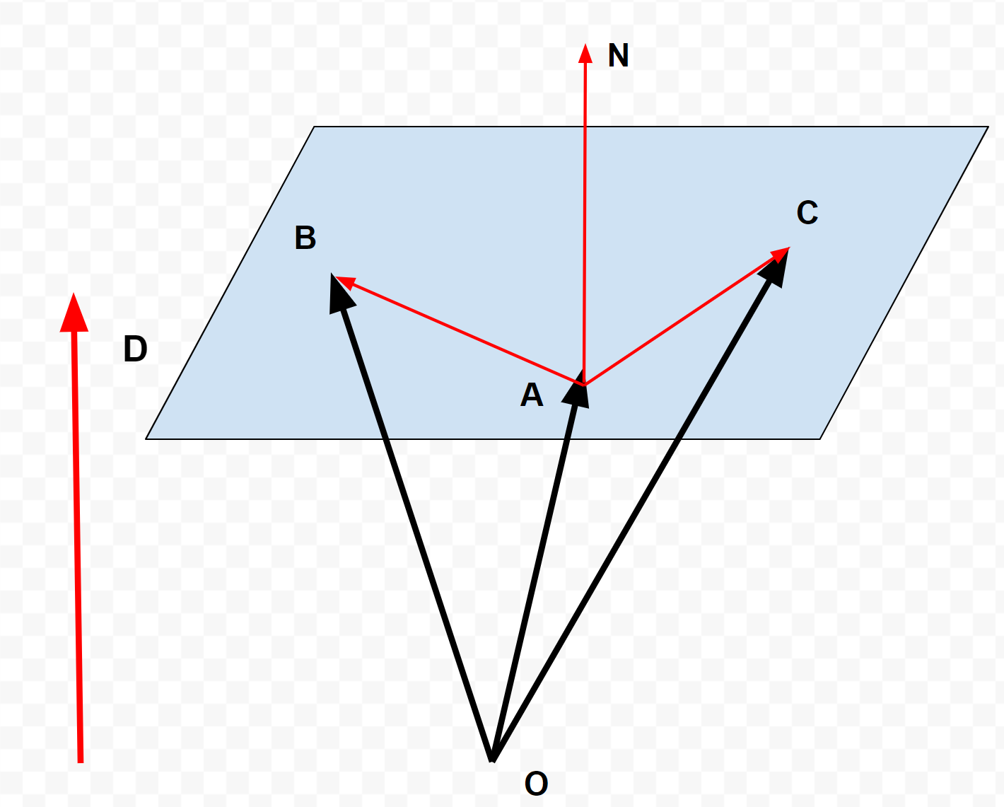 => 세 정점으로 평면 방정식을 구할 수 있다.