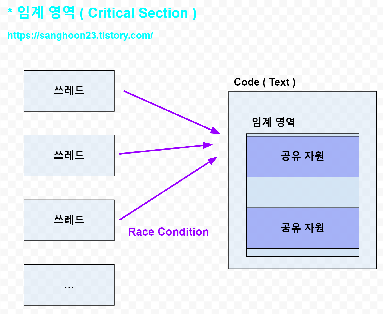 => 둘 이상의 쓰레드가 동시에 접근해서는 안되는 코드를 말함.